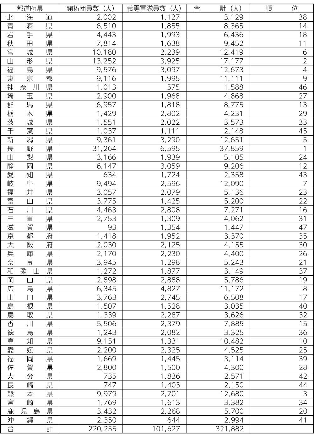 出典元は『満洲開拓史』(満洲開拓史刊行会編・1966年発行)。