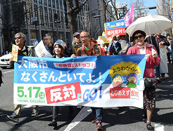 5月17日の「都構想」住民投票を前にして、大阪市をなくす「都構想」に反対し、住民自治を守ろうと広範な運動の共同が広がっています。