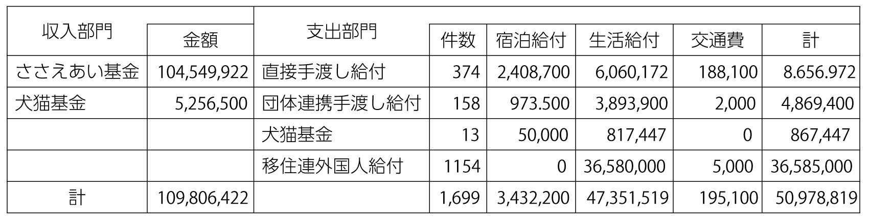 新型コロナウイルス感染拡大に伴い、増大する貧困問題を解決するために、筆者が事務局長を担う反貧困ネットワークが呼びかけて、「新型コロナ緊急アクション」(以下、緊急アクション)を昨年3月24日に設立、現在では40団体の参画で活動を進めています。「新型コロナウイルス災害緊急ささえあい基金」(以下、「ささえあい基金」)も4月16日にスタートさせました。現段階で、市民からのカンパ約1億1000万円が集まり、5000万円を給付しています。