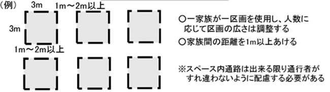 - 家族間の距離1メートル以上、ベッド間2メートル以上、ベッドの高さ35~37センチ以上の確保を目安とする。