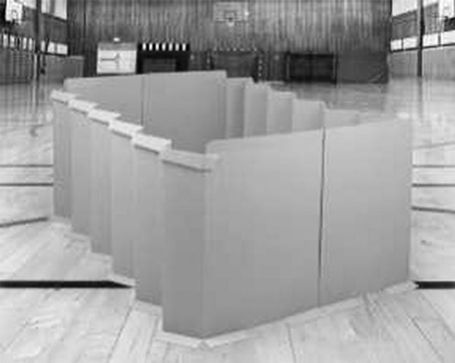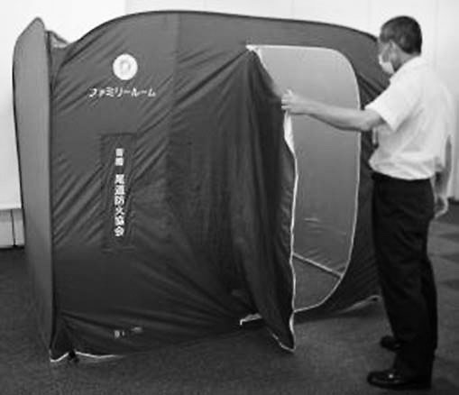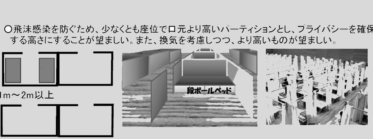 広島県尾道市では避難者の密接を防ぐため、避難所内にパーティションルームや段ボール間仕切りを設置するとしていますが(写真)、多くの自治体では具体的な対策を打ち出しているわけではありません。
