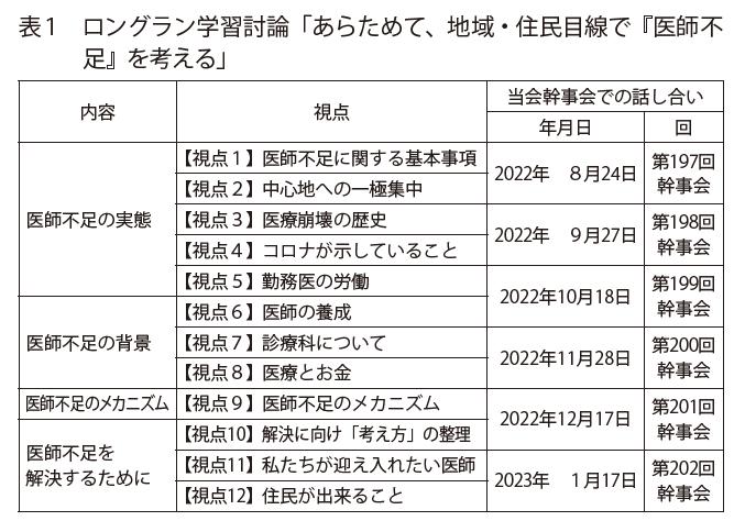 そこで、同会は、「あらためて、地域・住民目線で『医師不足』を考える」と題し、半年間に及ぶ「ロングラン学習討論」に取り組みました(後に使用した資料を216ページの冊子にしました)。本稿は、その核心部分を要約したものです。