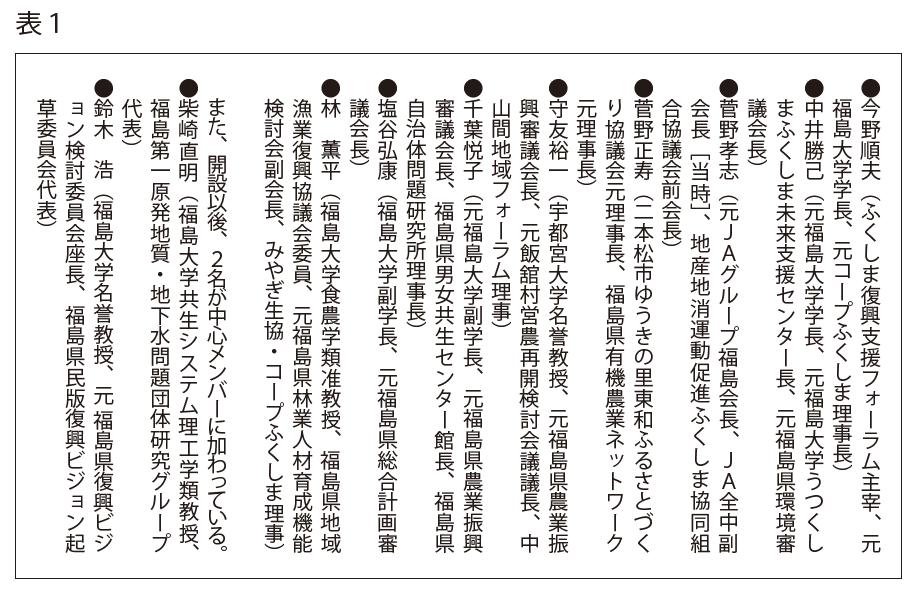 福島大学の教員や、福島県・自治体・一次産業・協同組合・地域づくりなどの公的な役職を務めた経験を持つメンバーで、その経験や専門性により、これまでの原子力災害の下での福島の復興の問題に関わってきたメンバーです。