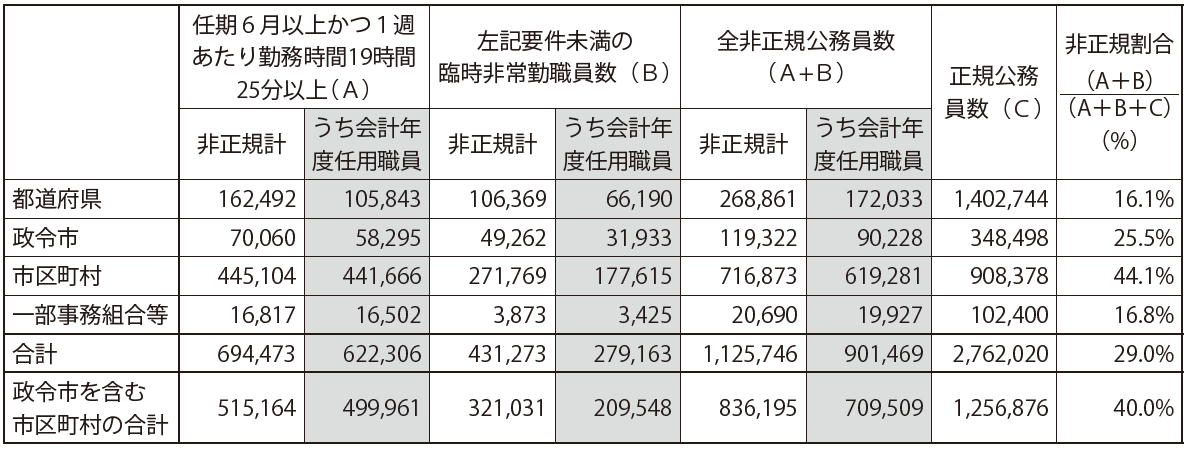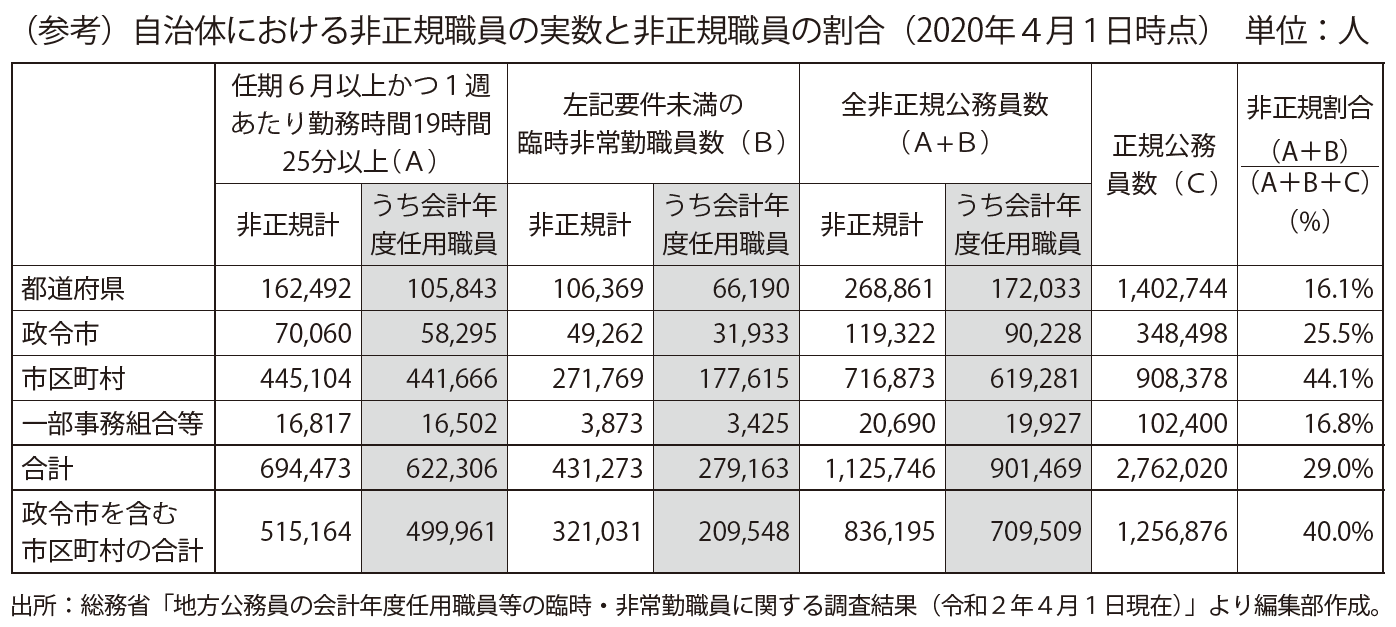 出所:総務省「地方公務員の会計年度任用職員等の臨時・非常勤職員に関する調査結果(令和2年4月1日現在)」より編集部作成。
