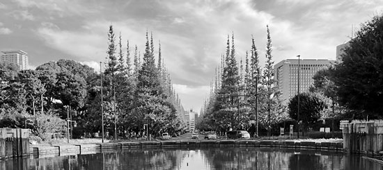 写真は絵画館前広場南端から南へ、イチョウ並木を観たものです。左2列の左(東側)は樹林帯で守られています。一方、右2列の右(西側)に樹林帯はなく、奥には景観にそぐわない高さ90メートルの超高層ビルが建ちます。現状でもこのビルは景観を阻害していますが、計画ではこのビルは2倍以上の190メートルビルに改築されます。そうなれば、一目で景観破壊だとわかります。並木の西側には、さらに高さ185メートル、80メートルの超高層ビルが建ちます。加えて神宮球場はイチョウ並木直近に移設するなど、巨大な開発です。事業者は三井不動産、伊藤忠商事、独立行政法人日本スポーツ振興センター、明治神宮の4者です。