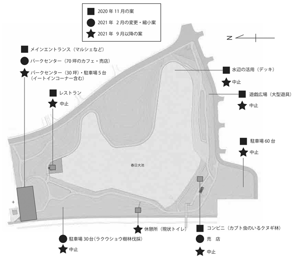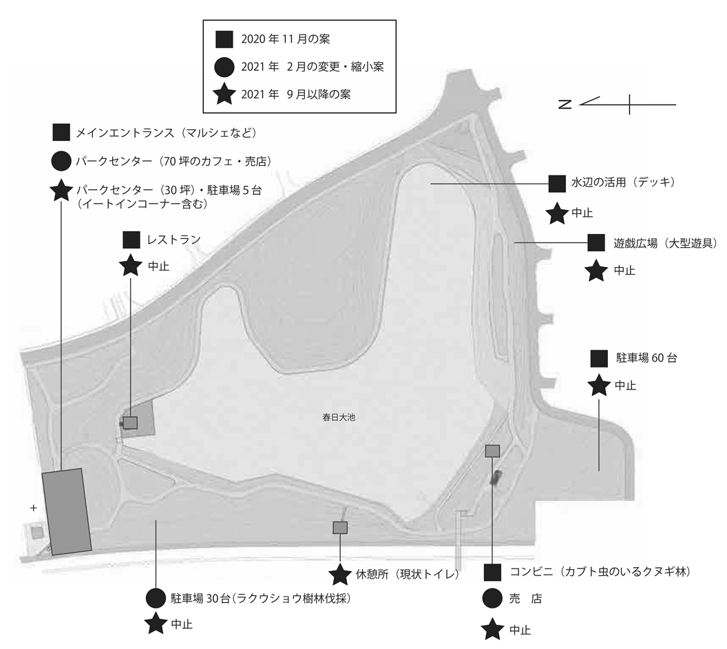 吹田市立桃山公園は千里ニュータウンの南端、大阪市の大動脈である地下鉄御堂筋線に乗り入れる北大阪急行桃山台駅前に位置する、1971年に開設された6万平方メートルの公園です。農業用ため池であった春日大池を中心とした、ニュータウン開発前の千里丘陵の風景を思わせる緑あふれる豊かな自然の空間です。2020年11月に吹田市が公表した、Park─PFI制度を活用した「魅力向上計画」は、池に浮かぶ東屋を撤去してレストランに、カブトムシが生息するクヌギ林を伐採して60台の駐車場とコンビニエンスストアなどというものでした。