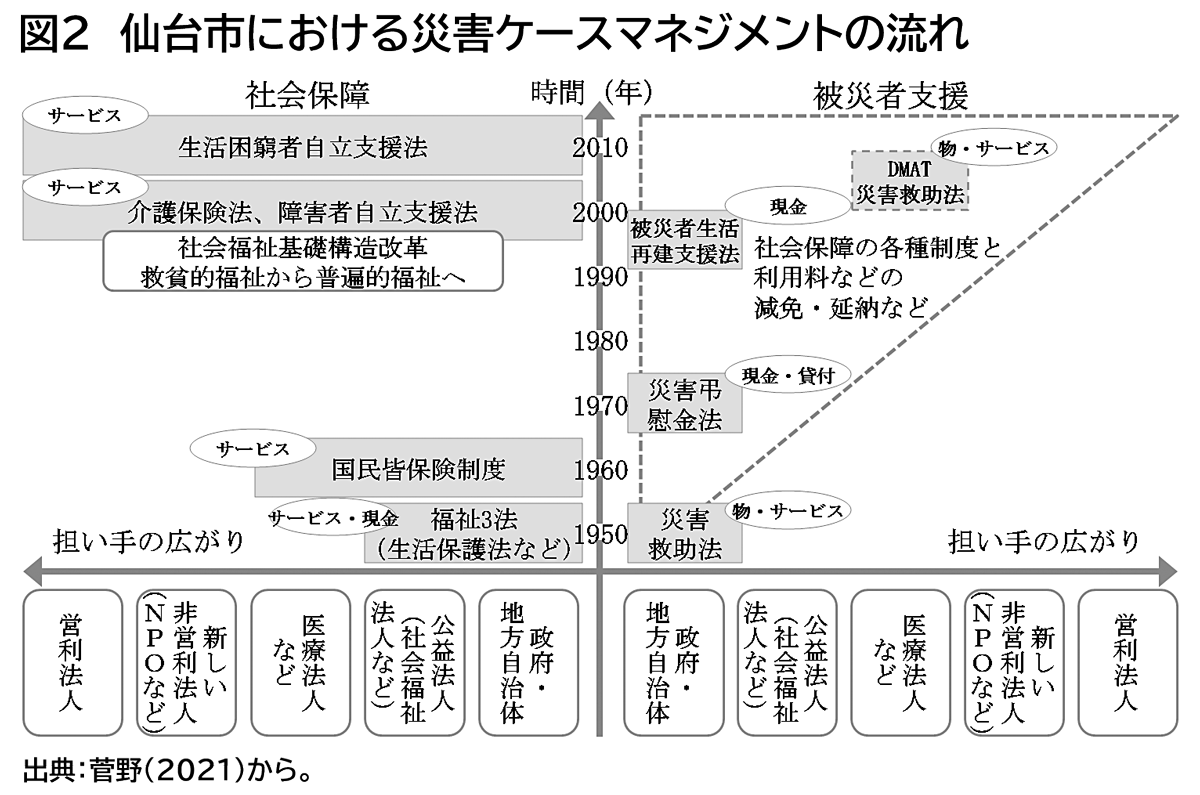 少子高齢化がすすむ東北地方を襲った2011年の東日本大震災以降は、被災者支援の「社会保障からの孤立」を解消する動きが広がりました。その代表例が「災害ケースマネジメント」です。