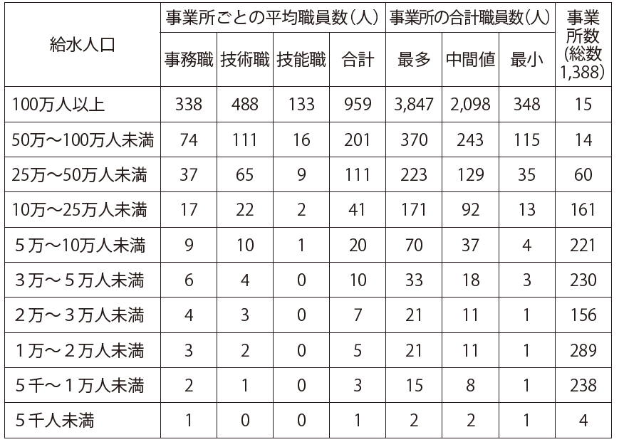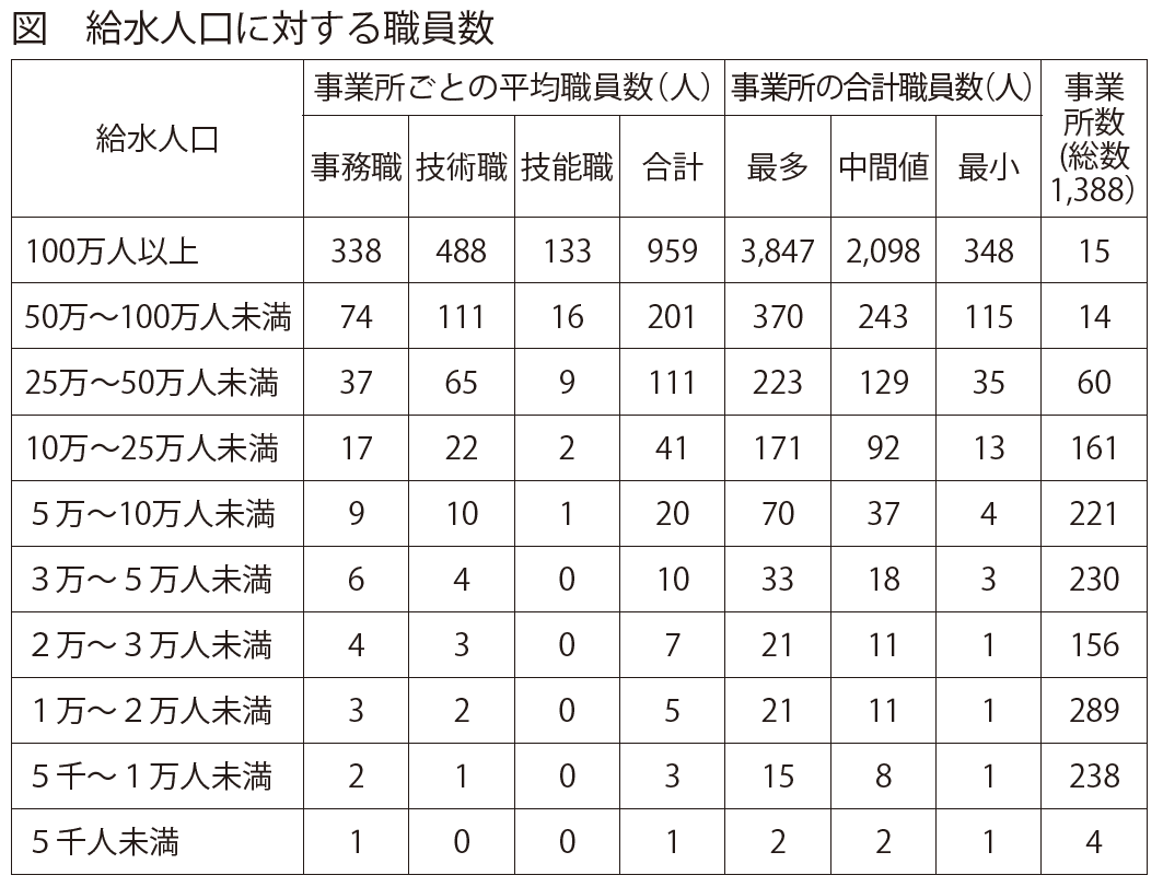 「新水道ビジョン」(2013年、厚生労働省)では「近年の地方公共団体の水道従事職員は減少傾向にあり、仮にこの傾向が続くとすれば、将来の発生が懸念される東海地震、東南海・南海地震、首都直下地震などによる大災害時、全国の水道事業者等が、自らの平常時の事業を継続しつつ、被災事業者に対して迅速かつ適切な支援を行うための人員を確保できるかどうか、非常に大きな懸念を抱かざるをえません。このことは、地方公共団体が水道事業従事職員を合理化する際に勘案すべき重要な事項といえます」と示されていました。