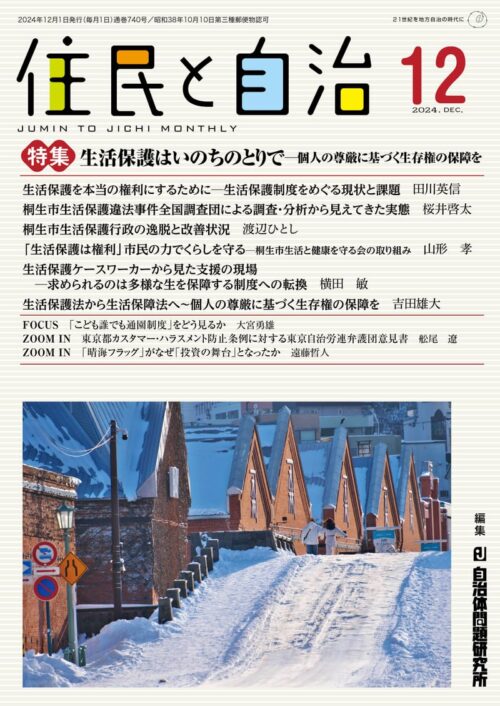 生活困窮者は増大していますが、生活保護制度の利用者数は減少しています。それは憲法25条の生存権を具体化した生活保護制度が、その目的から大きく乖離した保障水準にあり、生存権を保障する制度になっていないことを示しています。こうした中で2023年、群馬県桐生市の生活保護行政における憲法・生活保護法を無視した運用の実態が発覚しました。桐生市の事案は、この国の社会保障抑制政策の問題を浮かび上がらせました。本特集では桐生市の問題そして生活保護の現状を、研究者、議員、ケースワーカー、住民、弁護士らにより分析し、改善に向けた方向性を提示します。